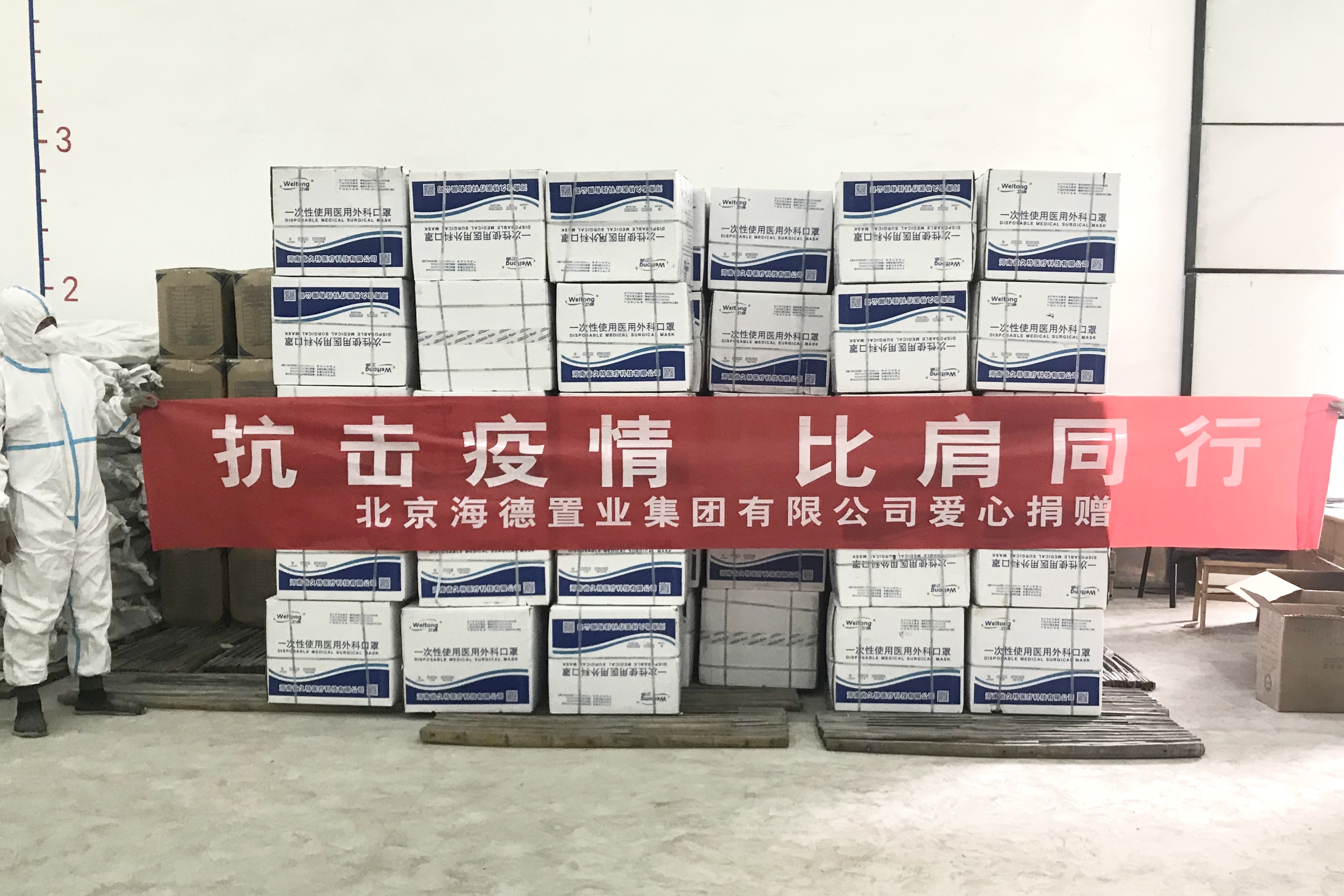 考慮到當前防護物資緊缺的情況,海德置業集團籌備了50萬只醫用口罩和防護服,火速捐贈至灤平縣